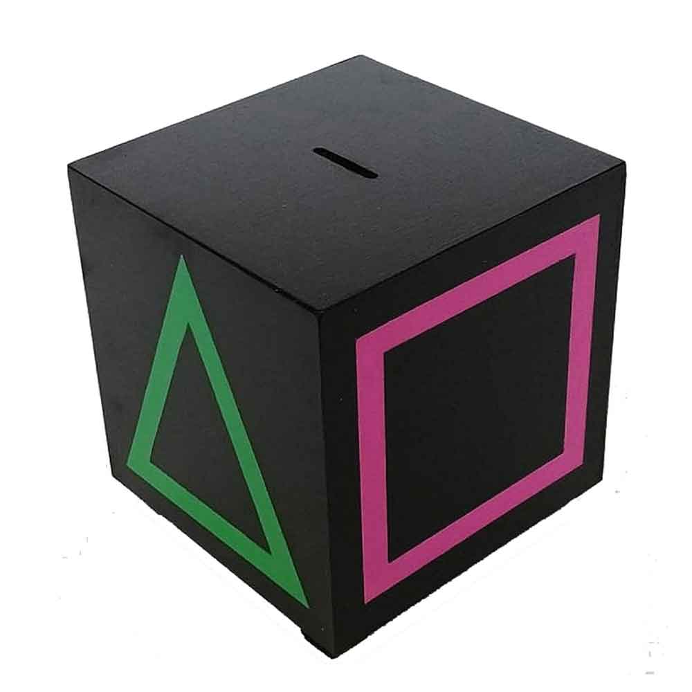 Alcancía en mdf de 9 mm pintada a mano, terminado en laca mate, tapon plastico y 4 bases antideslizantes de la marca Madera Natural. Es un artículo decorativo, además funcional. Es un producto liviano de fácil uso y creativo que puedes usar en mesas, escritorios o nocheros.