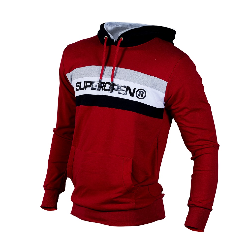 Buso para Hombre  con capota Doble marca SUPER OPEN talla única, elaborado en burda licrada y rit (pretinas) cuello redondo con cordón de ajuste y estampado  en plastisol,