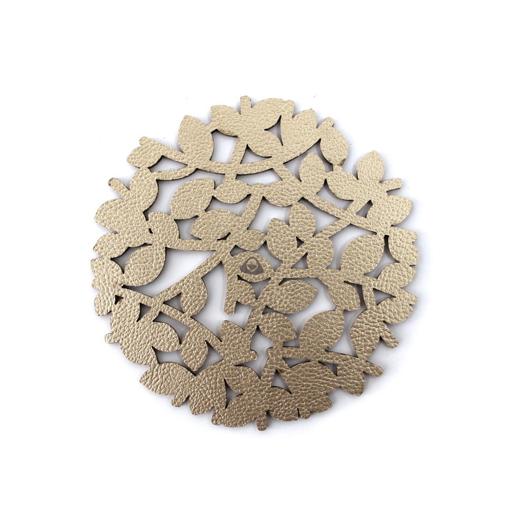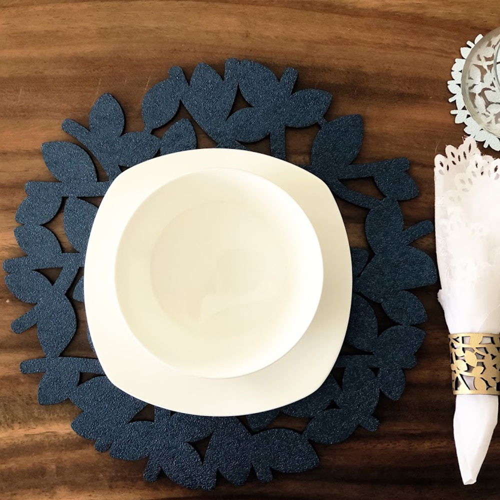 Individual para mesa doble faz fácil de limpiar con forma redonda, su modelo es llamado Nido y viene con dos colores los cuales son Plateado-Dorado / Plateado-Oro Rosa / Dorado-Oro Rosa / Azul Mate-Plateado / Dorado-Azul Mate. Cuenta con 3 tamaños diferentes como lo son: