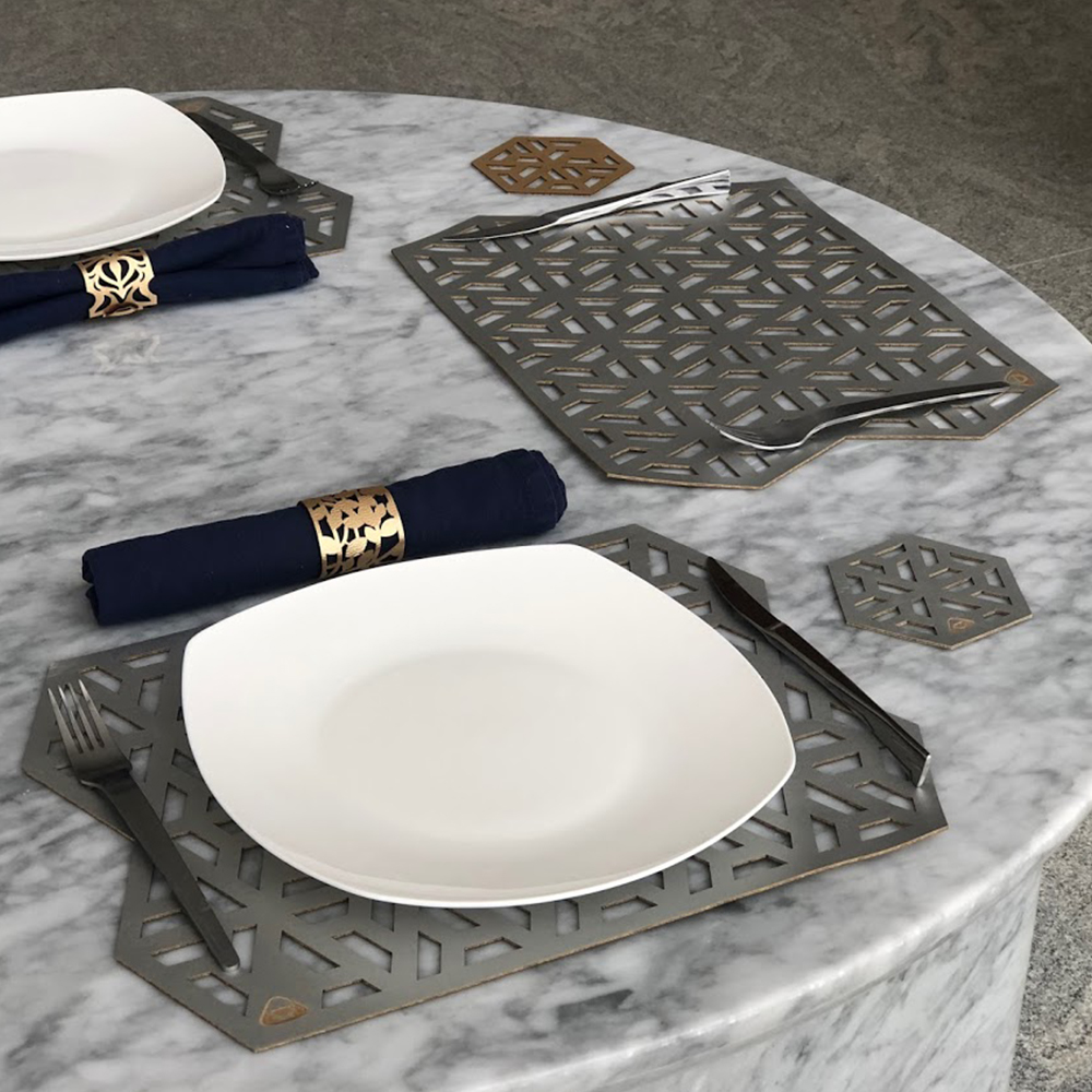 Portavaso para mesa doble faz fácil de limpiar con forma redonda, su modelo es llamado Cubit y viene con dos colores los cuales son Plateado-Dorado / Plateado-Oro Rosa / Dorado-Oro Rosa / Azul Mate-Plateado / Dorado-Azul Mate.