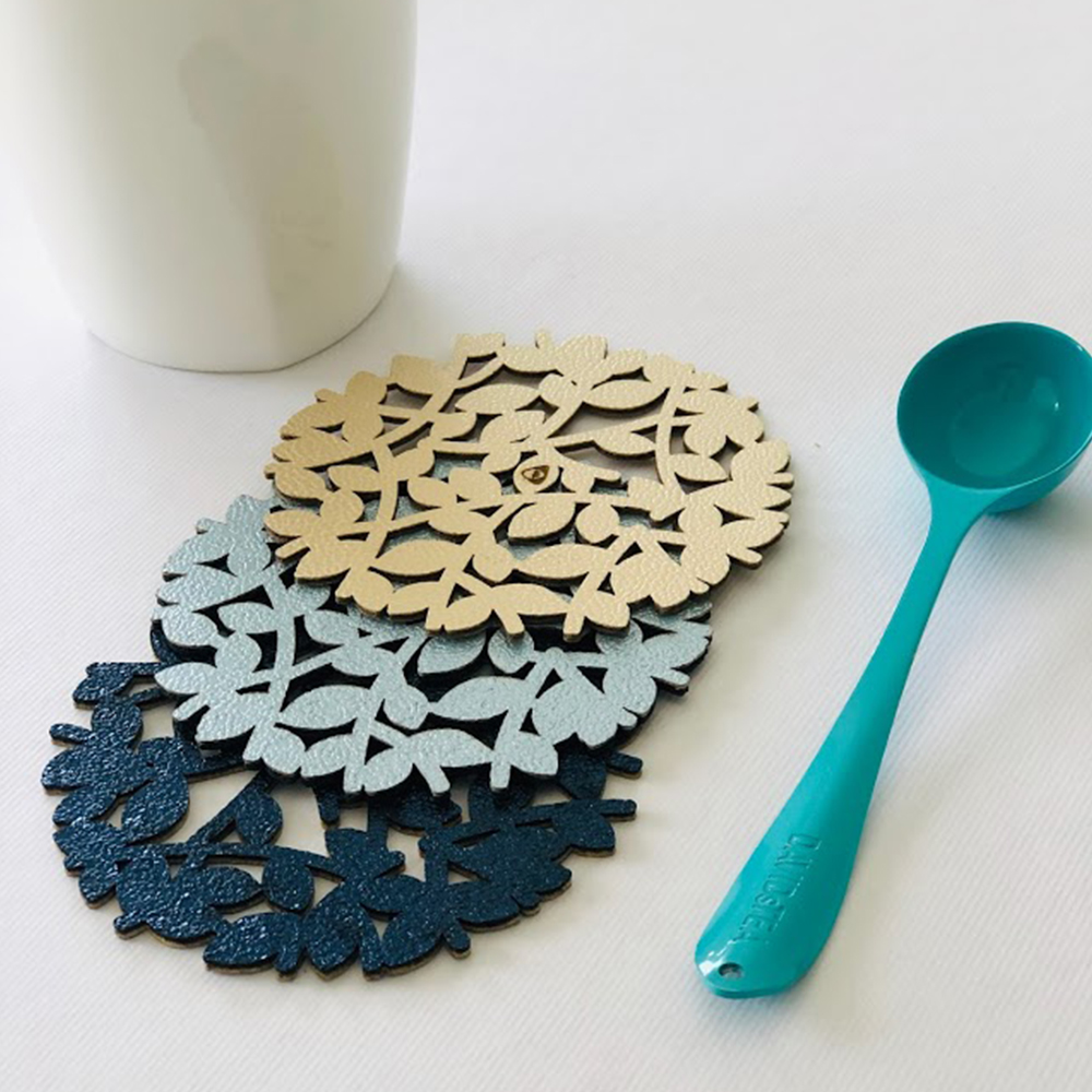 Portavaso para mesa doble faz fácil de limpiar con forma redonda, su modelo es llamado Nido y viene con dos colores los cuales son Plateado-Dorado / Plateado-Oro Rosa / Dorado-Oro Rosa / Azul Mate-Plateado / Dorado-Azul Mate.